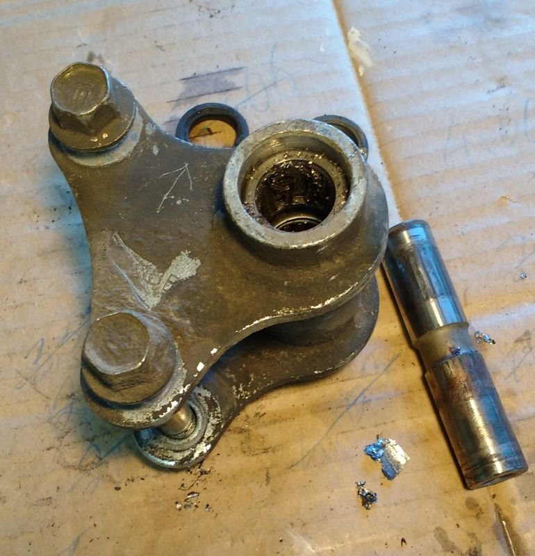 GaryDG: My apologies for the earlier answer. The link arm is fine but the "arm subassembly" is definitely locked. I took out the collar and found the one needle bearing assembly was shredded and the collar was badly scored. Well, that's clearly a problem. Thanks for the advice.