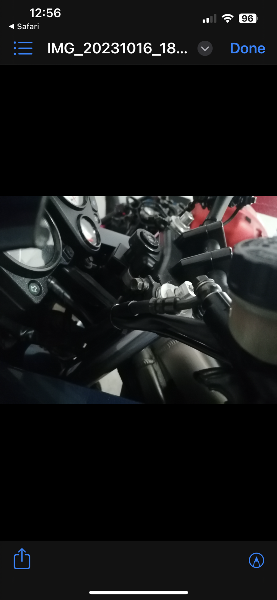 Here are the photos, there is no play in the wheel bearing or steering head bearings whatsoever. I have not checked the tyre pressures but was told they where 36lbs front and 40lbs rear, (on my previous GSXR750 I ran 36 and 36 and found grip improved a lot on this slippery Spanish asphalt) I wouldn't know where to start adjusting the forks but it all looks normal, not been lowered or anything.