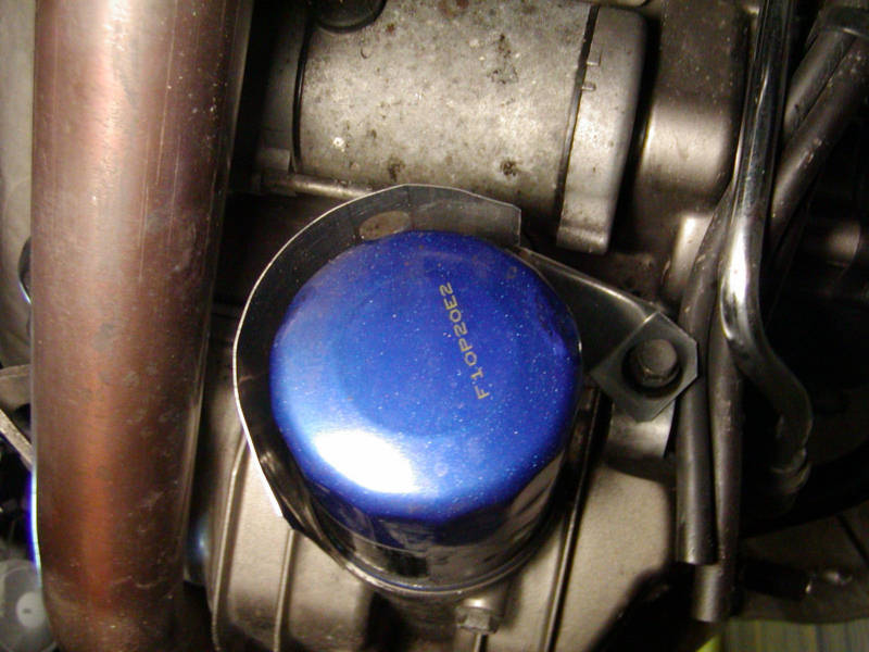 I normally run M1 15w-50 but for this month (cold to date) and mothballing, I'm running Rotella-T syn 5w-50 now $22/gallon at WallyWorld! Any good multi-w syn even down to 5 weight is good but with M1 now over $6.30/qt watch for it on sale. Pep Boys has sales for $30 for 5 qts + a filter which you can use in your cage (or upgrade if the rebate allows to a Purolator PL14612). The PL1612 has better media, bf valve & capacity than OE but requires minor chin fairing trim. The WallyWorld (WalMart) SuperTech ST7317 (less than $3!) and Purolator Pure One PL14610 are 3.25" long; too long unless you really hack your chin fairing.
