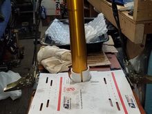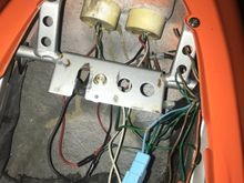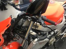 Forward facing spotlight indicator in the fairing vent during rebuild/paint. Since holesawed a stock lens and stuck it over the spot to orangeise it