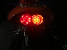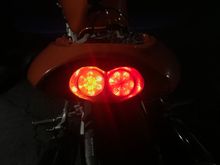 Tried modding the stock tailight but blew the really bright orange led...that an eagle eye each side in 1" aluminium thin wall tube. The side lights are VT Conmmodore with led lamps